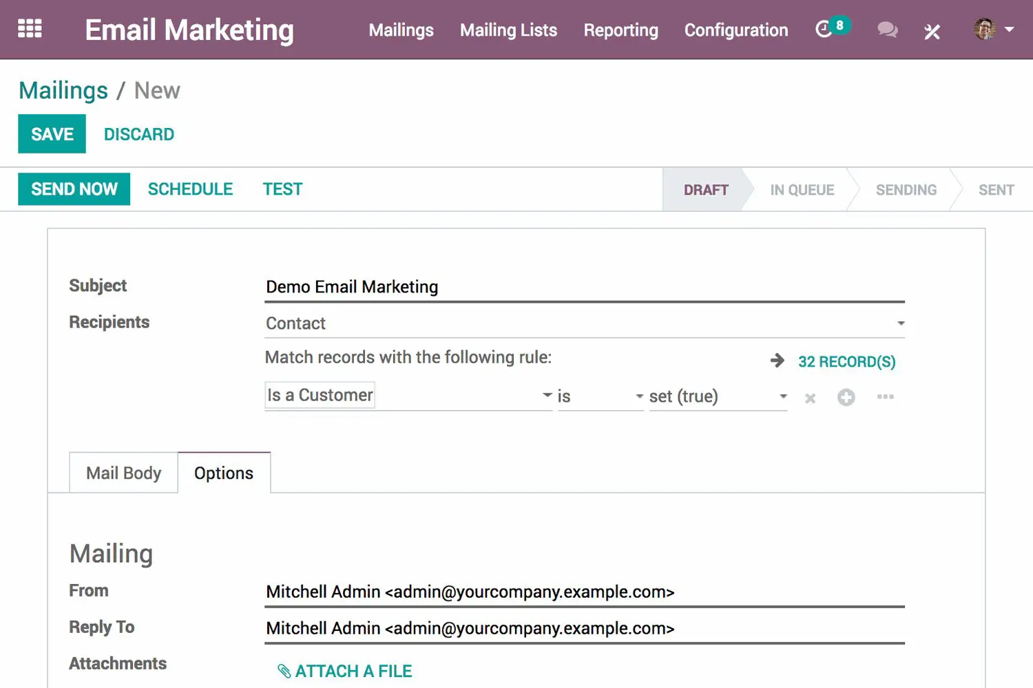 Одоо Имейл Маркетинг помага за създаването на професионални мейли за секунди и ги доставя до правилната аудитория – в идеалния момент!